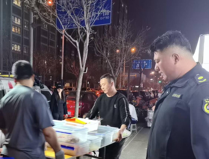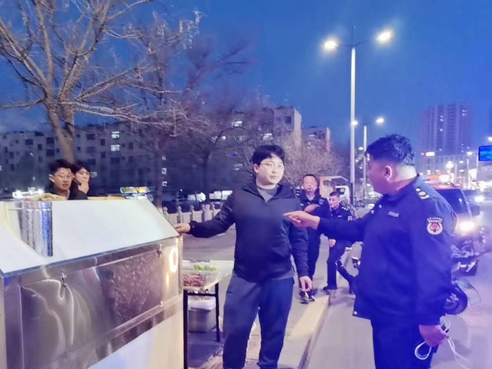 针对市民投诉集中的夜间市容乱象,以“宣传教育+严格执法”为抓手,对辖区主次干道、餐饮集中区域及建筑工地开展拉网式排查。